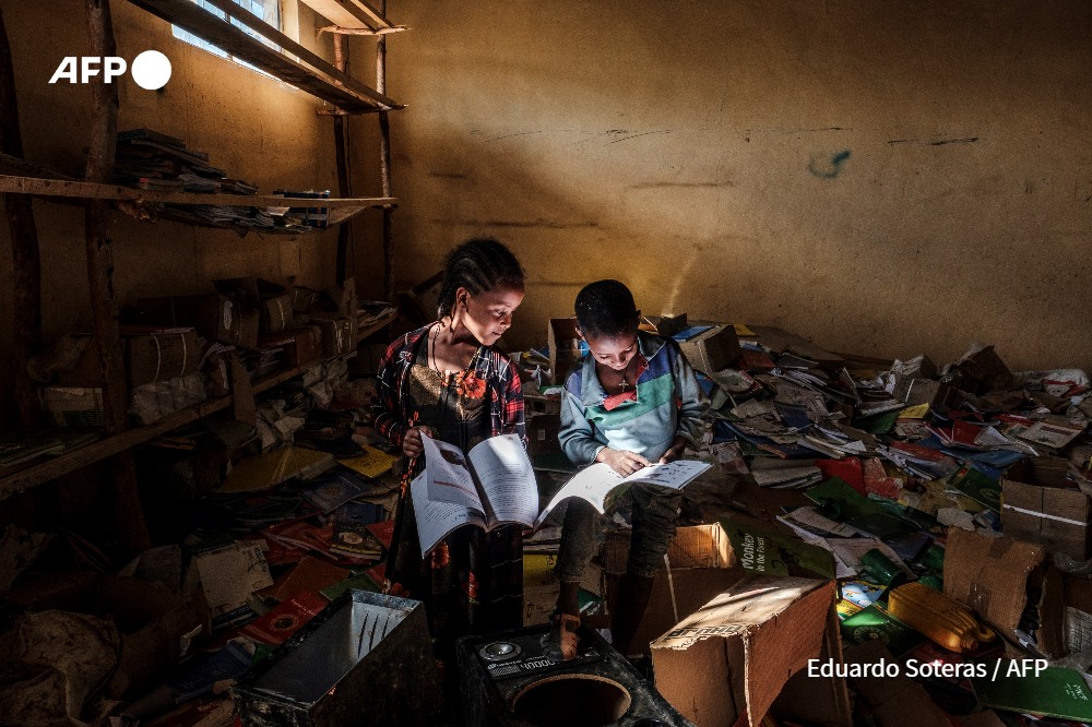 Argentinian photographer Eduardo Soteras has been documenting the situation of children in northern Ethiopia since 2020 and has captured rare moments such as the one on the winning picture: two children finding shelter among books in a destroyed school library of Ethiopia’s Tigray region, smiling despite the chaos that surrounds them.