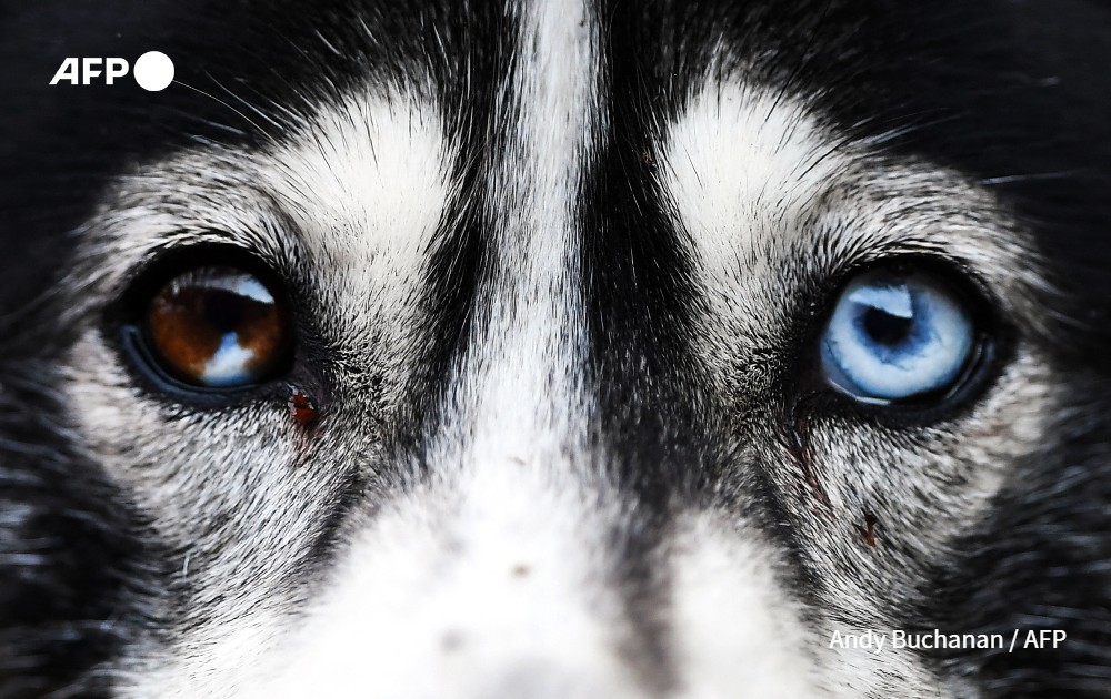 A Husky dog reacts as he takes part in a training session on forest tracks, ahead of the The Siberian Husky Club of Great Britain 39th Aviemore Sled Dog Rally near Feshiebridge, Cairngorm, Scotland, on January 26, 2023.